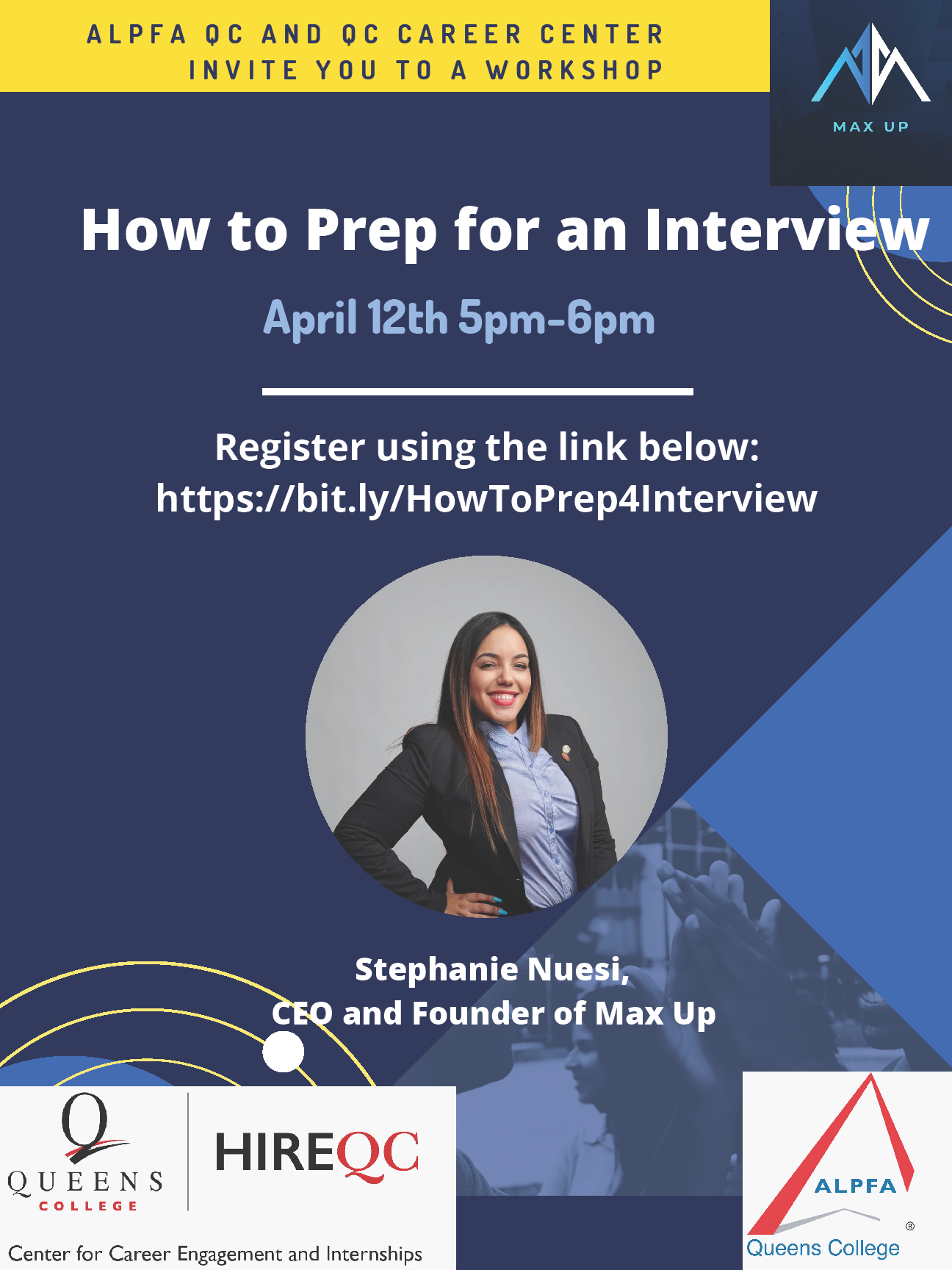 Career Conversations with BDO Thursday, April 12 from 12:30pm – 1:30pm RSPV: https://bit.ly/CareerConvoBDO<https://nam02.safelinks.protection.outlook.com/?url=https%3A%2F%2Fbit.ly%2FCareerConvoBDO&data=04%7C01%7CMarvin.Milich%40qc.cuny.edu%7C827e819f004f4181cb3d08da17312511%7C6f60f0b35f064e099715989dba8cc7d8%7C0%7C0%7C637847798396033114%7CUnknown%7CTWFpbGZsb3d8eyJWIjoiMC4wLjAwMDAiLCJQIjoiV2luMzIiLCJBTiI6Ik1haWwiLCJXVCI6Mn0%3D%7C3000&sdata=L04g8HfQtLla3nX1nIPN%2F5UbH2brE3vjd7UdTbF9SmA%3D&reserved=0> Join us for an engaging and informative conversation with BDO Campus Recruiter and current QC graduate student as well as BDO SALT Senior Manager as they will discuss [cid:image001.png@01D848E4.E6FD4150] How to Prep for an Interview Join this event to hear Stephanie Nuesi tips and suggestions on how to showcase your talents/skills to succeed at an interview. Tuesday, April 12th from 5pm-6pm RSVP: https://bit.ly/HowToPrep4Interview<https://nam02.safelinks.protection.outlook.com/?url=https%3A%2F%2Fbit.ly%2FHowToPrep4Interview&data=04%7C01%7CMarvin.Milich%40qc.cuny.edu%7C827e819f004f4181cb3d08da17312511%7C6f60f0b35f064e099715989dba8cc7d8%7C0%7C0%7C637847798396189345%7CUnknown%7CTWFpbGZsb3d8eyJWIjoiMC4wLjAwMDAiLCJQIjoiV2luMzIiLCJBTiI6Ik1haWwiLCJXVCI6Mn0%3D%7C3000&sdata=DGcAo9c0u6a6RkciVgDbIV1vdw1tbRv28Bku9qnlvW0%3D&reserved=0> [cid:image002.png@01D848F8.4D66ED70] Eleanor Mavashev, Ms. Ed., Ms. Tax Business Career Educator & Internship Specialist Center for Career Engagement & Internships, Queens College/CUNY Tel: 718.997.4461 Visit our website: https://qccareer.wordpress.com/<https://nam02.safelinks.protection.outlook.com/?url=https%3A%2F%2Fqccareer.wordpress.com%2F&data=04%7C01%7CMarvin.Milich%40qc.cuny.edu%7C827e819f004f4181cb3d08da17312511%7C6f60f0b35f064e099715989dba8cc7d8%7C0%7C0%7C637847798396189345%7CUnknown%7CTWFpbGZsb3d8eyJWIjoiMC4wLjAwMDAiLCJQIjoiV2luMzIiLCJBTiI6Ik1haWwiLCJXVCI6Mn0%3D%7C3000&sdata=NQeZY5StwbDOY5MFvBKp%2BrSEM4ilWGA8K3TrCx0ce%2FA%3D&reserved=0> Students schedule an appointment at: https://qc-cuny.campus.eab.com/pal/YA7ptCXt8p<https://nam02.safelinks.protection.outlook.com/?url=https%3A%2F%2Fqc-cuny.campus.eab.com%2Fpal%2FYA7ptCXt8p&data=04%7C01%7CMarvin.Milich%40qc.cuny.edu%7C827e819f004f4181cb3d08da17312511%7C6f60f0b35f064e099715989dba8cc7d8%7C0%7C0%7C637847798396189345%7CUnknown%7CTWFpbGZsb3d8eyJWIjoiMC4wLjAwMDAiLCJQIjoiV2luMzIiLCJBTiI6Ik1haWwiLCJXVCI6Mn0%3D%7C3000&sdata=ZKyUi6WbfjTtg1mHmZUwcgP2J4dMZxodHyuWMCdzf44%3D&reserved=0> Alumni schedule an appointment at: https://tinyurl.com/qccareercontact