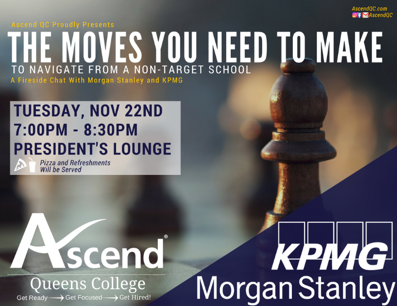 Join us next Tuesday for a discussion with esteemed professionals from Morgan Stanley and KPMG! These professionals were able to begin their careers from "non-target" schools, and if you didn't know: we're pretty darn "non-target". But these coveted firms are still attainable, so come learn about the skills you need to master to make it possible!