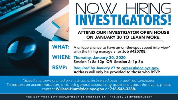 [Englishstudents] Department of Correction Open House Investigator Open House on Jan 30!