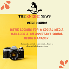 Dear Students, Are you interested in getting involved with The Knight News? The paper is looking for a Social Media Manager and a Social Media Assistant Manager. See the flyer attached for more info. Best, Jason Tougaw Professor, English English Internship Coordinator Faculty Advisor, The Knight News Queens College jason.tougaw@qc.cuny.edu<mailto:jason.tougaw@qc.cuny.edu> [cid:9EBA6EAE-8739-4254-ABD9-5F7CEE8B4907@lan] If you’re interested, check out: The QC English Career Resources<http://english.qc.cuny.edu/undergraduate/horizons/> pages QC POD<https://queenspodcastlab.org/qcpod/>, the podcast I co-founded with the Queens Podcast Lab The One You Get<https://www.dzancbooks.org/our-books/the-one-you-get>, my memoir My bookThe Elusive Brain<https://yalebooks.yale.edu/book/9780300221176/elusive-brain> My column in Psychology Today<https://www.psychologytoday.com/us/contributors/jason-tougaw> Finally, if you like chicken content, check out The Ladies<https://www.youtube.com/channel/UC6yYNAtZf3Xn6yFyMD9W8Xw> on YouTube