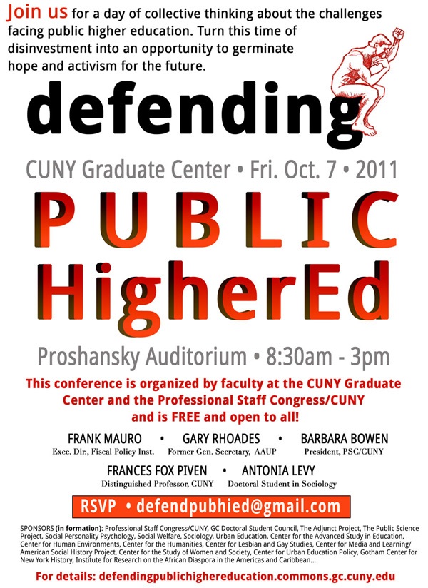 Gslisadjuncts Fwd: [Socrates] Defending Public Higher Education - Oct 7, Graduate Center