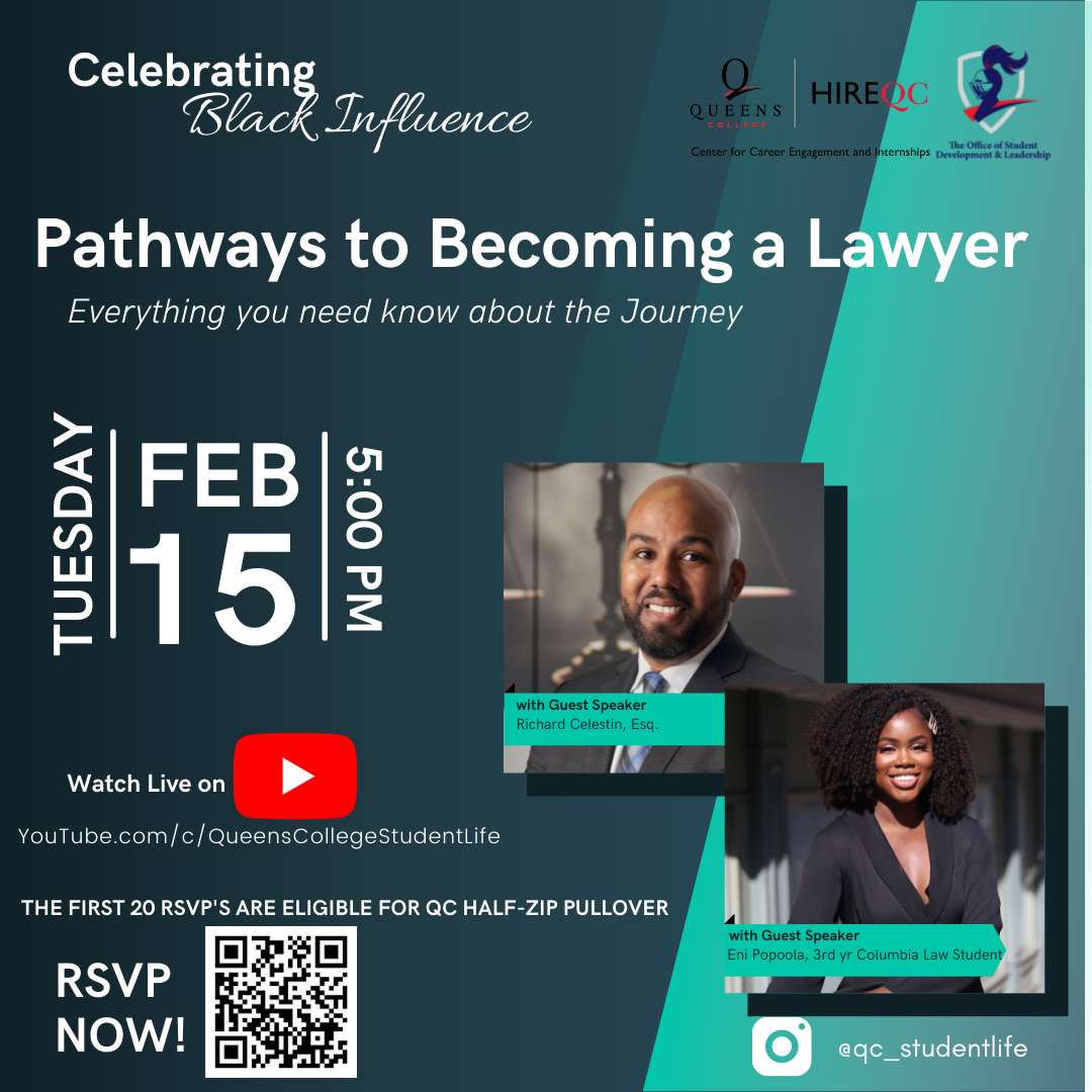 Good afternoon! Here are some upcoming events for this week! *Pathways to Becoming A Lawyer - Tuesday, February 15th at 5pm:* Join us with Attorney Richard Celestin, Esq. and third-year law Columbia Law student and beauty blogger Eni Popoola as they discuss vital information you need to know about gaining entry to and successfully navigating law school. Moderated by SEEK student Melton Thorpe. Live on the QC Student Life YouTube Channel. Sign up on Eventbrite at this link to be eligible for a QC Pullover Hoodie https://www.eventbrite.com/e/264468290777 <https://www.eventbrite.com/e/264468290777> Pathways To Becoming A Lawyer <https://www.eventbrite.com/e/264468290777> Pathways to Becoming A Lawyer: Everything You Need to Know About The Journey www.eventbrite.com https://www.youtube.com/channel/UC-6X-I3aBZgcCgj6FyAoqOw <https://www.youtube.com/channel/UC-6X-I3aBZgcCgj6FyAoqOw> Queens College Student Life - YouTube <https://www.youtube.com/channel/UC-6X-I3aBZgcCgj6FyAoqOw> Queens College Student Life - Sharing outside of the classroom experience with diverse programs and activities. www.youtube.com *Project Hope Coping with Covid-19 Support Group - Wednesday, February 16th at 12:30pm:* Please join QC students Jessica and Danielle Alejandro along with Lanisa Letang, who is in partnership with NY Project Hospitality, for a clinically based support group for those who have lost loved ones due to COVID-19, who are long haulers, or who need a safe space to talk about how their lives were altered. This event will be held on the QC Student Life YouTube Channel. https://www.youtube.com/channel/UC-6X-I3aBZgcCgj6FyAoqOw <https://www.youtube.com/channel/UC-6X-I3aBZgcCgj6FyAoqOw> Queens College Student Life - YouTube <https://www.youtube.com/channel/UC-6X-I3aBZgcCgj6FyAoqOw> Queens College Student Life - Sharing outside of the classroom experience with diverse programs and activities. www.youtube.com *Hip Hop Trivia - Wednesday, February 16th at 7pm: Test your Hip Hop skills and win prizes with this fast-paced game of Hip Hop Trivia! JOIN US on Wednesday, February 16th at 7pm. You may scan the QR code on the flyer for the event or use the link. See you there!* *https://bit.ly/QCHHTrivia <https://bit.ly/QCHHTrivia> * Join our Cloud HD Video Meeting <https://bit.ly/QCHHTrivia> Zoom is the leader in modern enterprise video communications, with an easy, reliable cloud platform for video and audio conferencing, chat, and webinars across mobile, desktop, and room systems. Zoom Rooms is the original software-based conference room solution used around the world in board, conference, huddle, and training rooms, as well as executive offices and classrooms. Founded in 2011, Zoom helps businesses and organizations bring their teams together in a frictionless environment to get more done. Zoom is a publicly traded company headquartered in San Jose, CA. bit.ly All event flyers are attached to this email. -- *Cassandra Dolan* | Secretary Qc Dietetics Club *Email:* qcdieteticsclub@gmail.com [image: created with MySignature.io] <https://www.instagram.com/qc_dieteticsclub/>