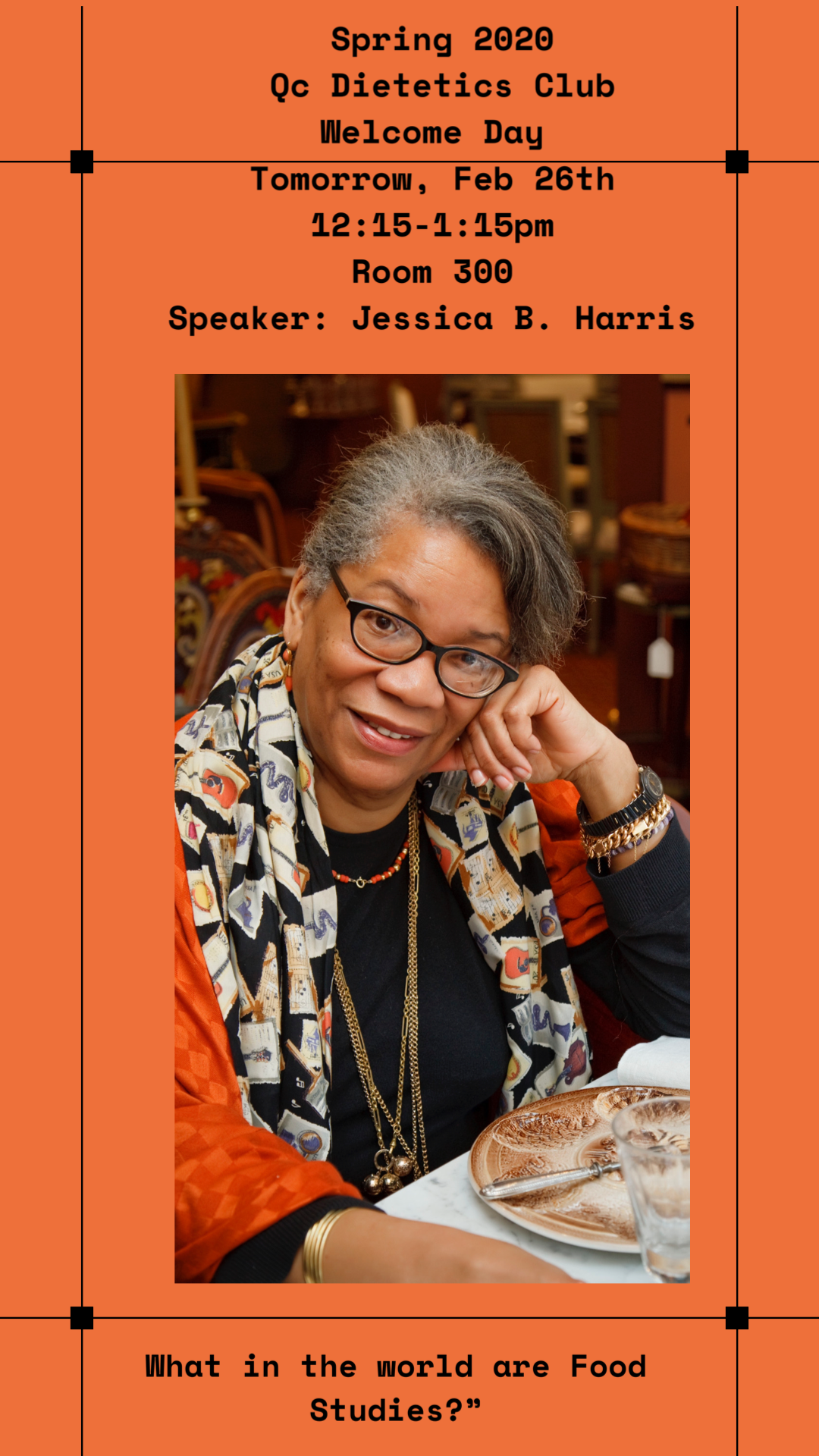 Dear Qc Dietetics Club Members, I do apologize for the late e-mail, due to technical difficulties we were unable to send out e-mails. GOOD NEWS WE ARE UP AND RUNNING!!! Please if you haven't already follow us on Instagram @Qc_dieteticsclub for club and school notifications. This is a late notification, but we will be having our Welcome Back Day tomorrow (Feb 26) in Remsen Hall Room 300 during free hour 12:15pm-1:15pm. All members are encouraged to attend as the FNES department faculty and members will be together. This event will count as 1 attended meeting. We will also have a guest speaker Jessica B. Harris, an American culinary historian, college professor, and cookbook author. She will be presenting "What in the World are Food Studies?" Looking forward to seeing you all & having another great semester. Best, QC Dietetics Club Team [image: IMG_4635 (1).PNG]