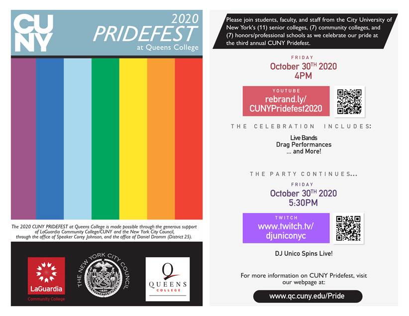 [SADivision 0420] 10/30, 4pm - CUNY PrideFest 2020: YouTube information for the 4pm session has been updated