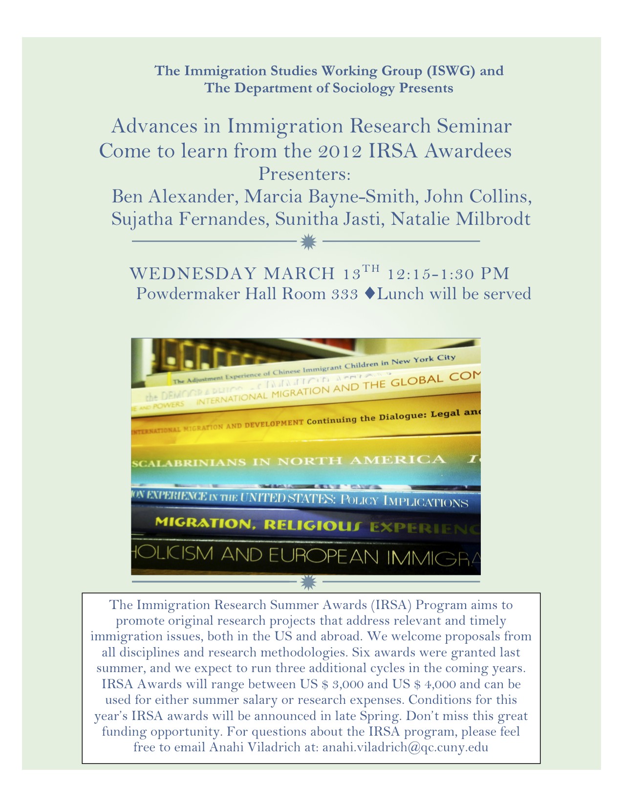 Save the date! Advances in Immigration Research! Come to hear from our 2012 Awards Winners