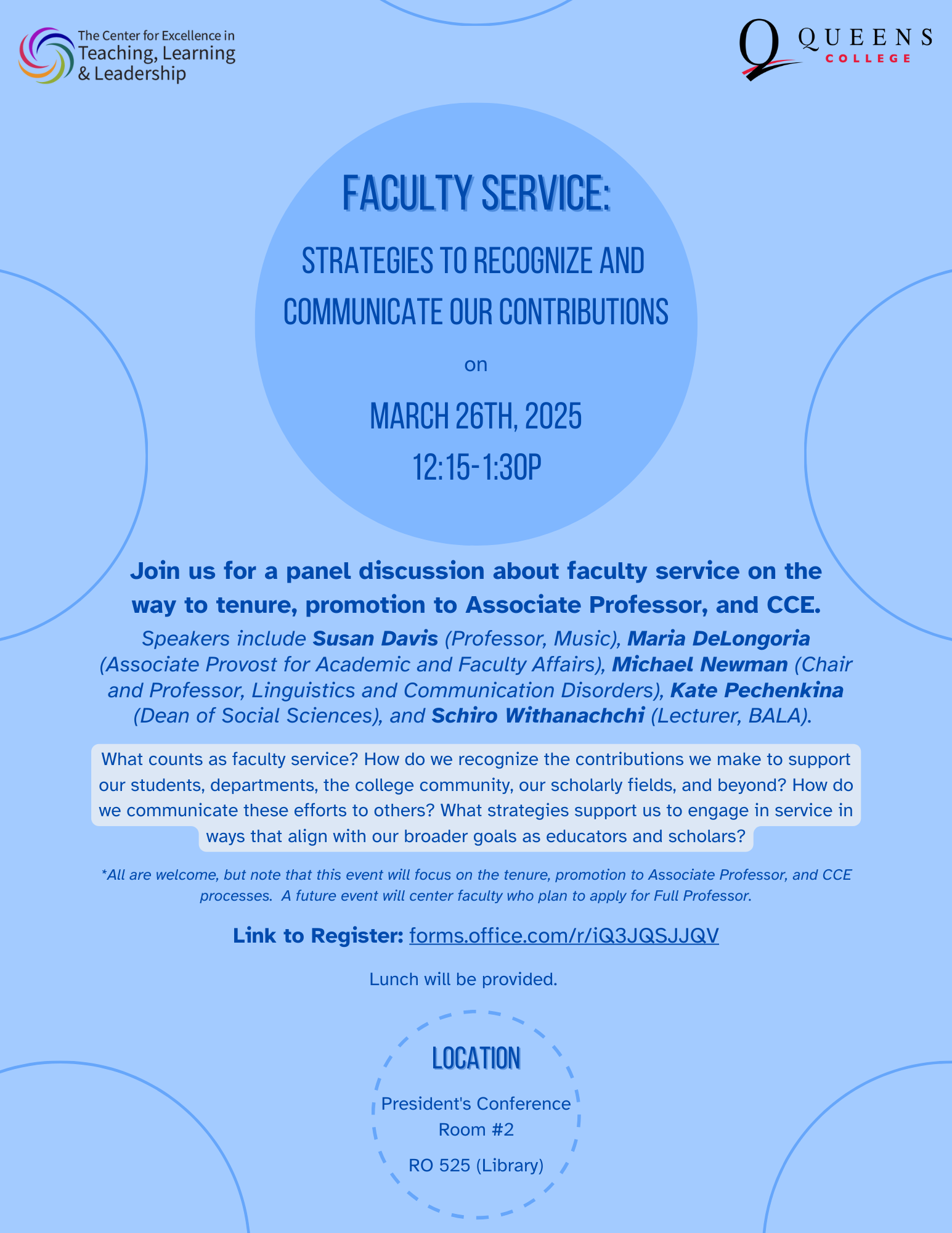 [CETLL] a panel discussion on Faculty Service: Strategies to Recognize and Communicate Our Contributions, Wed March 26, 12:15-1:30p, President's Conference Room #2