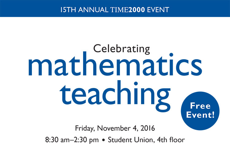 Please share with your high school math colleagues and administrators. Thank you! Problems viewing this email? Click here<http://www.qc.cuny.edu/CS/TIME2000/Time2000_eblast_SP16longer.html> Click here<http://www.qc.cuny.edu/CS/TIME2000/Time2000_eblast_SP16.pdf> to download PDF [http://www.qc.cuny.edu/CS/TIME2000/Time2000_eblastTOP_SP16.jpg] Keynote Speaker Jennifer Quinn Professor of Mathematics, University of Washington-Tacoma Students will be exposed to dynamic mathematics lessons and hear about the joys of teaching mathematics. Free registration at time2000.qc.cuny.edu/conference<http://www.qc.cuny.edu/Academics/Honors/Time2000/Pages/conference.aspx> Learn about Jennifer Quinn at http://faculty.washington.edu/jjquinn/ Please select one mathematics teacher and up to 25* students (college-bound seniors, and juniors) to attend the event. Each student should have demonstrated mathematical ability (B average or better) and completed the Algebra 2/Trigonometry course, or have shown some interest in becoming a mathematics teacher. Register on-line by October 14, 2016. *Additional students and late registration allowed as space permits. Please contact Naomi Weinman before registering more than 25 students. For further information, please contact Naomi Weinman Naomi.Weinman@qc.cuny.edu<mailto:Naomi.Weinman@qc.cuny.edu> * 718-997-5377 time2000.qc.cuny.edu<http://www.qc.cuny.edu/Academics/Honors/Time2000/Pages/default.aspx> [http://www.qc.cuny.edu/CS/TIME2000/Time2000_eblastBOTTOM_SP16.jpg]